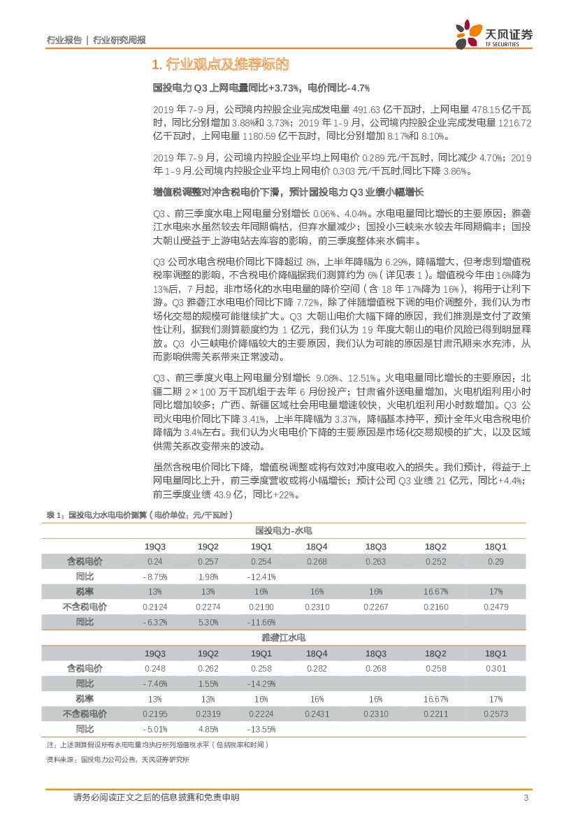 天风证券:公用事业行业研究周报:国投电力三季报前瞻:量增价跌,预计Q3单季业绩小幅增长.pdf
