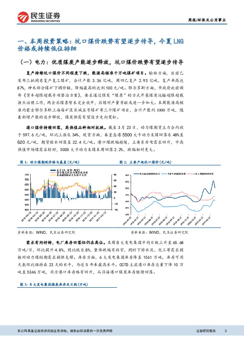 民生证券:环保及公用事业周报:坑口煤价跌势有望逐步传导,今夏LNG价格或持续低位徘徊.pdf
