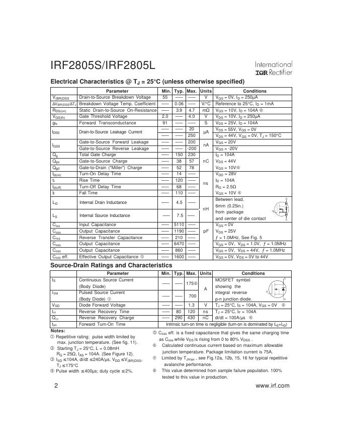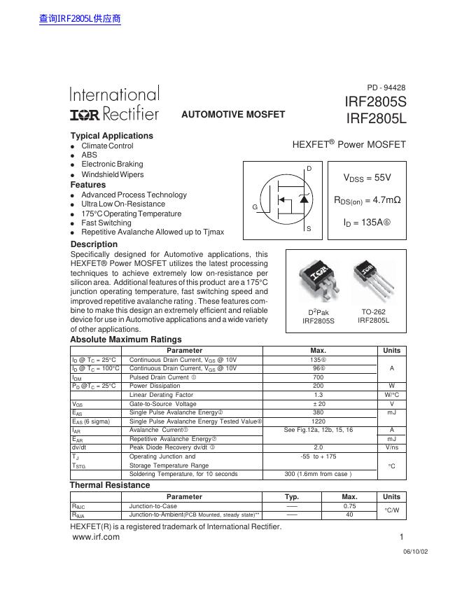 International IOR Rectifier IRF2805S IRF2805L 数据手册.pdf