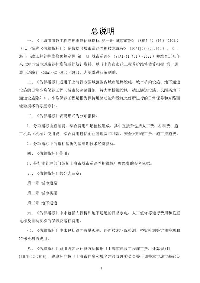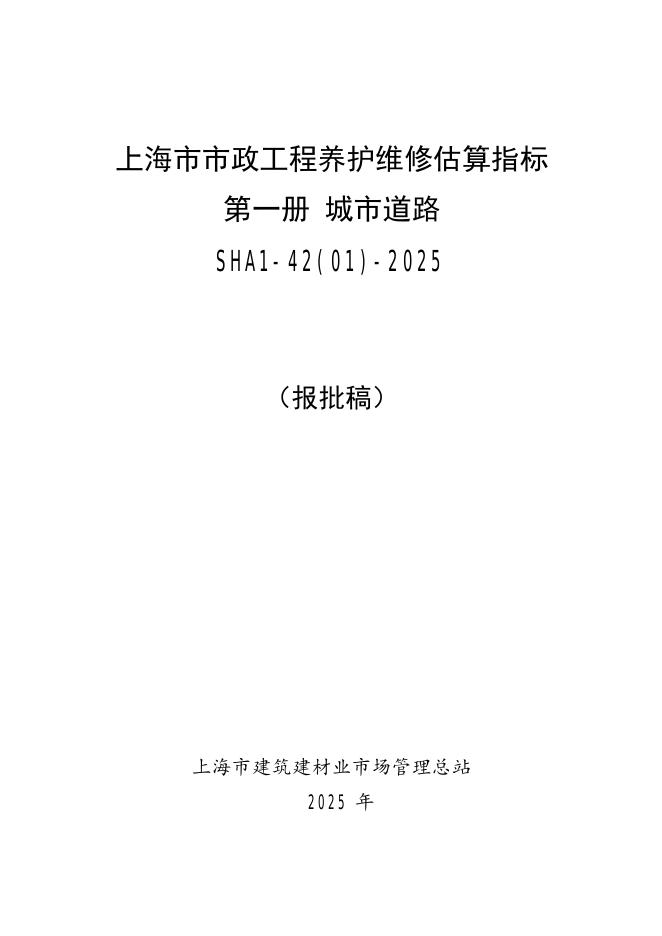 SHA1-42(01)-2025 上海市市政工程养护维修估算指标 第一册 城市道路(报批稿).pdf
