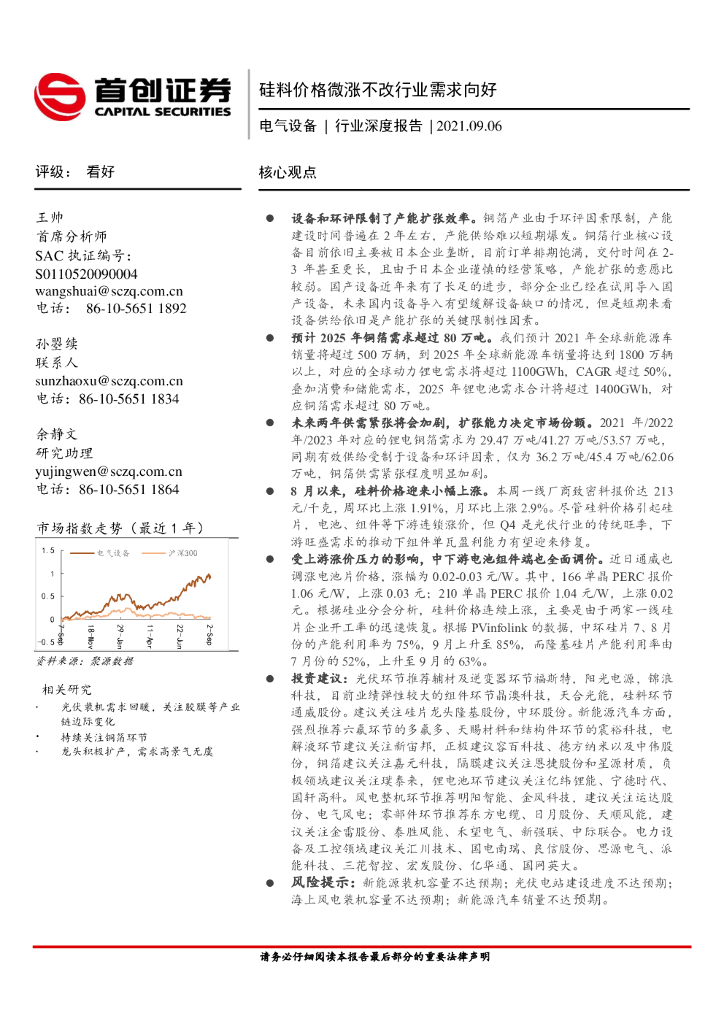 首创证券:电气设备行业深度报告:硅料价格微涨不改行业需求向好.pdf