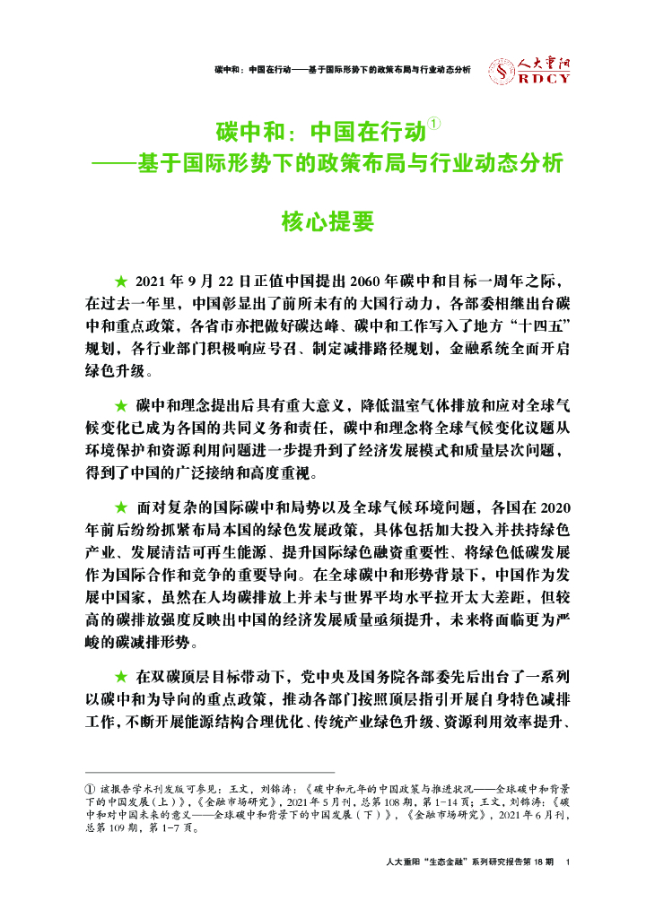 人大重阳:碳中和:中国在行动——基于国际形势下的政策布局与行业动态分析.pdf