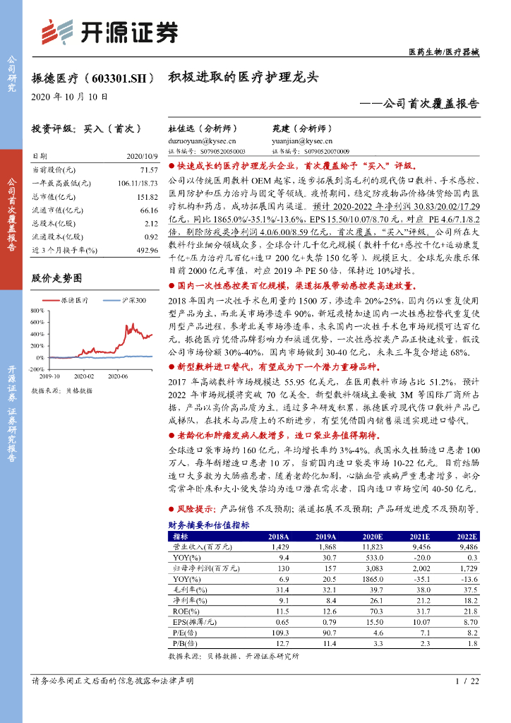 开源证券:振德医疗(603301)-公司首次覆盖报告:积极进取的医疗护理龙头.pdf