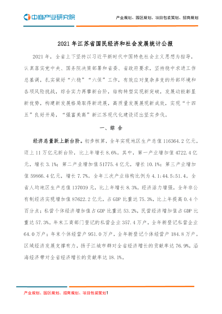 2021年江苏省国民经济和社会发展统计公报.pdf