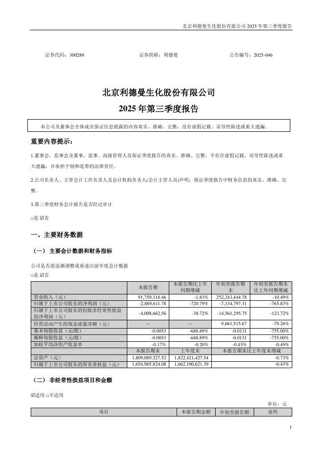 300289-利德曼:2025年三季度报告.pdf