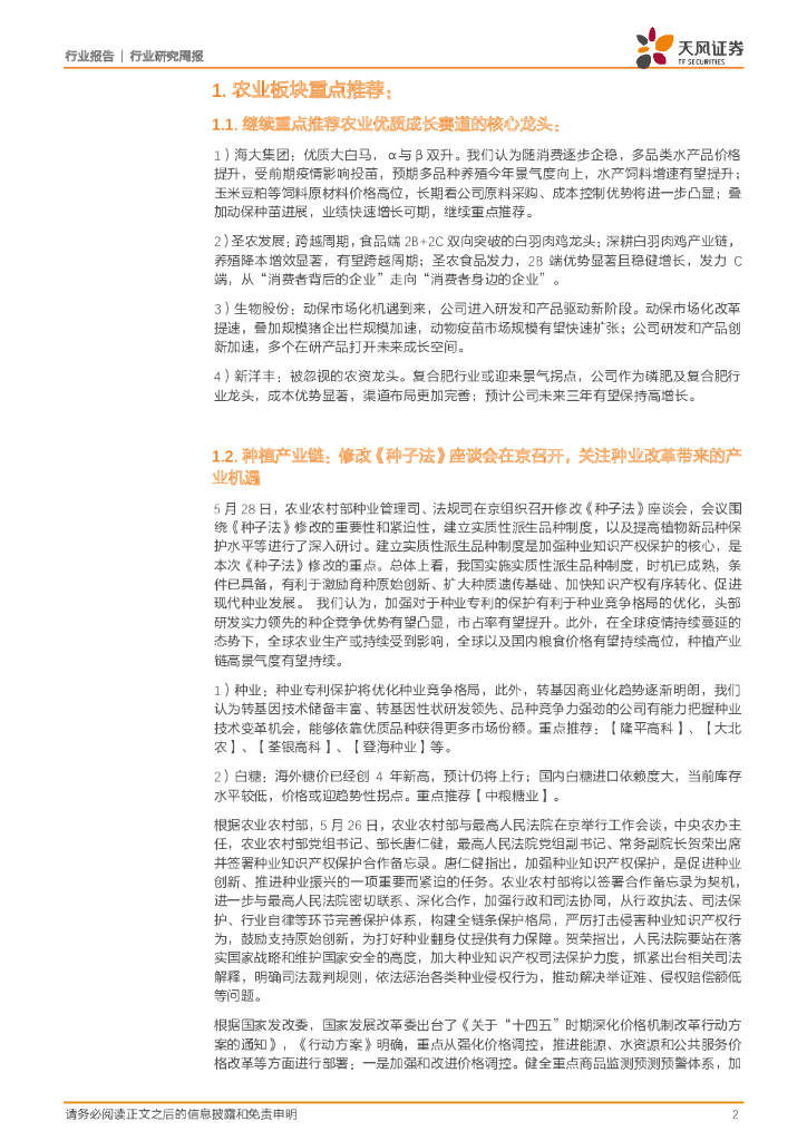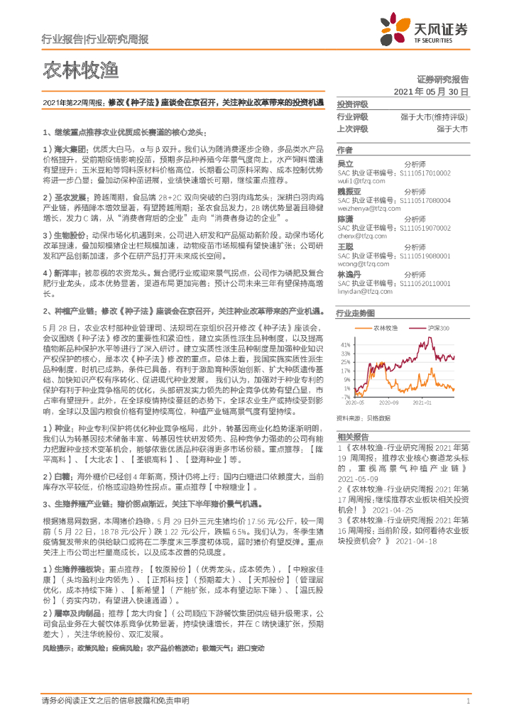 天风证券:农林牧渔2021年第22周周报:修改《种子法》座谈会在京召开,关注种业改革带来的投资机遇.pdf
