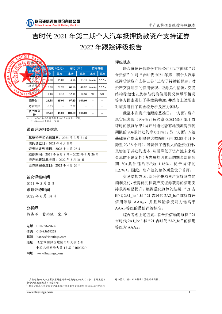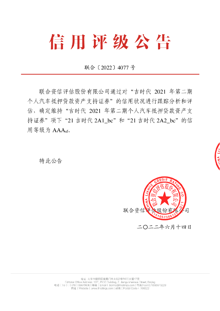 联合资信:吉时代2021年第二期个人汽车抵押贷款资产支持证券2022年跟踪评级报告.pdf