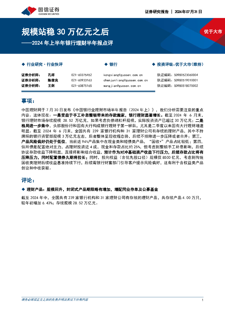 国信证券:2024年上半年银行理财半年报点评:规模站稳30万亿元之后.pdf