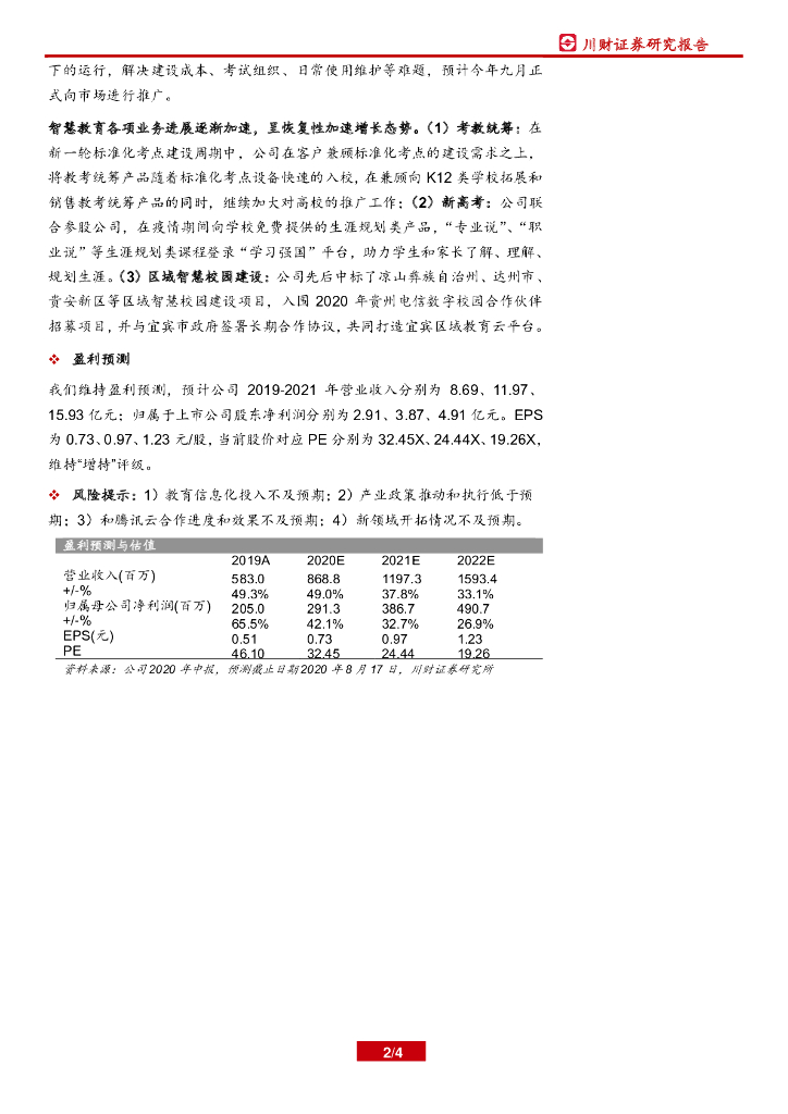 川财证券:佳发教育(300559)-2020年中报点评:H1业绩稳步增长,与腾讯合作有新进展.pdf