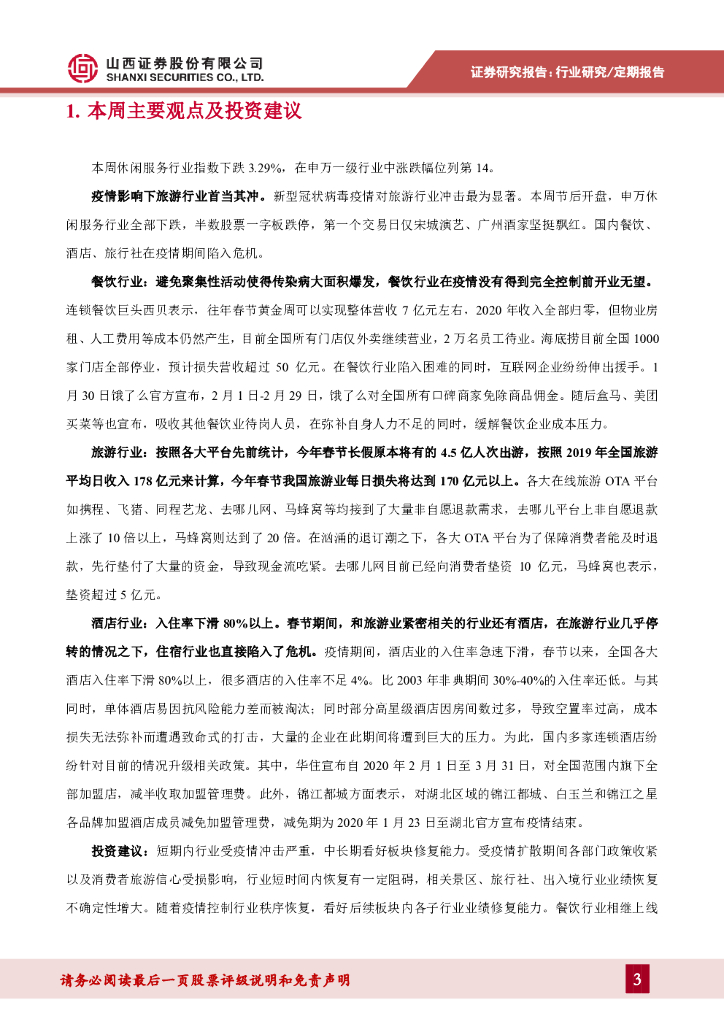山西证券:社会服务行业周报:疫情影响下旅游行业首当其冲.pdf