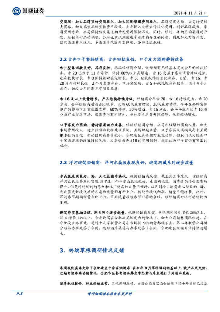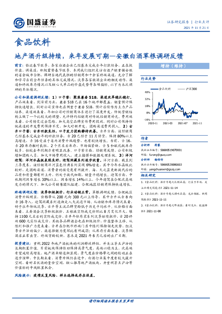 国盛证券:食品饮料行业点评:地产酒升级持续,来年发展可期—安徽白酒草根调研反馈.pdf