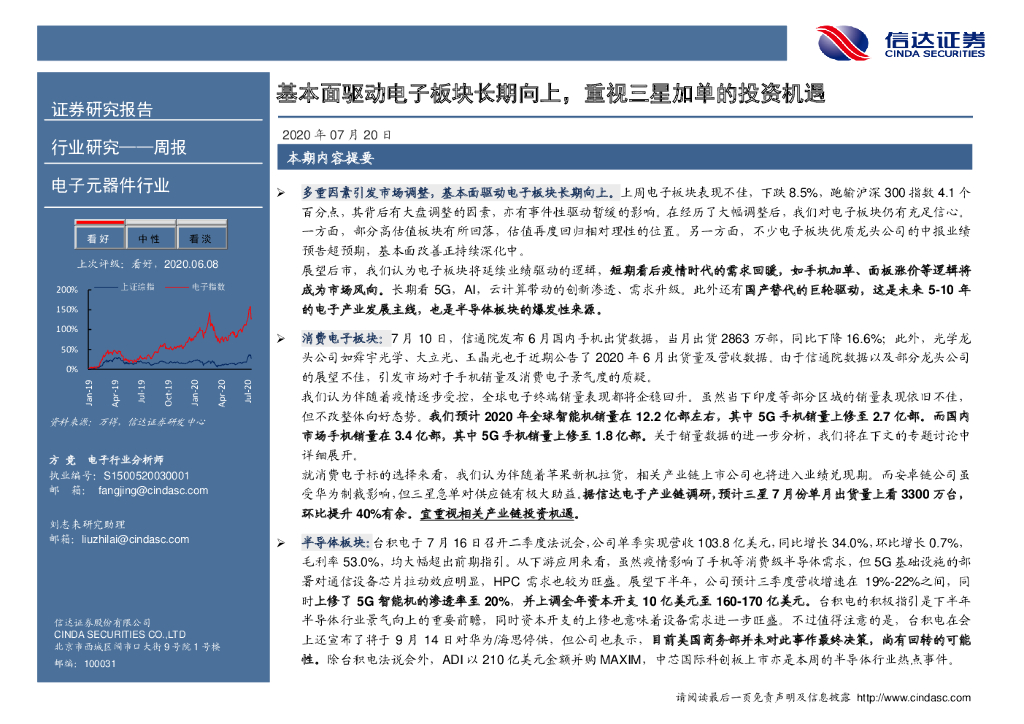 信达证券:电子行业周报:基本面驱动电子板块长期向上,重视三星加单的投资机遇.pdf