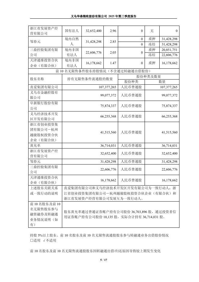 601113-华鼎股份:义乌华鼎锦纶股份有限公司2025年第三季度报告.pdf