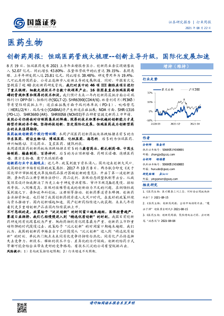 国盛证券:创新药周报:恒瑞医药管线大梳理--创新主导升级,国际化发展加速.pdf