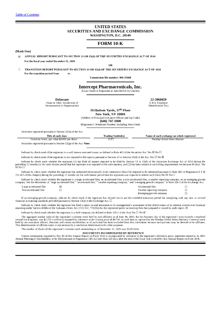 Intercept Pharmaceuticals(ICPT)2020财年年度报告(英文版).pdf