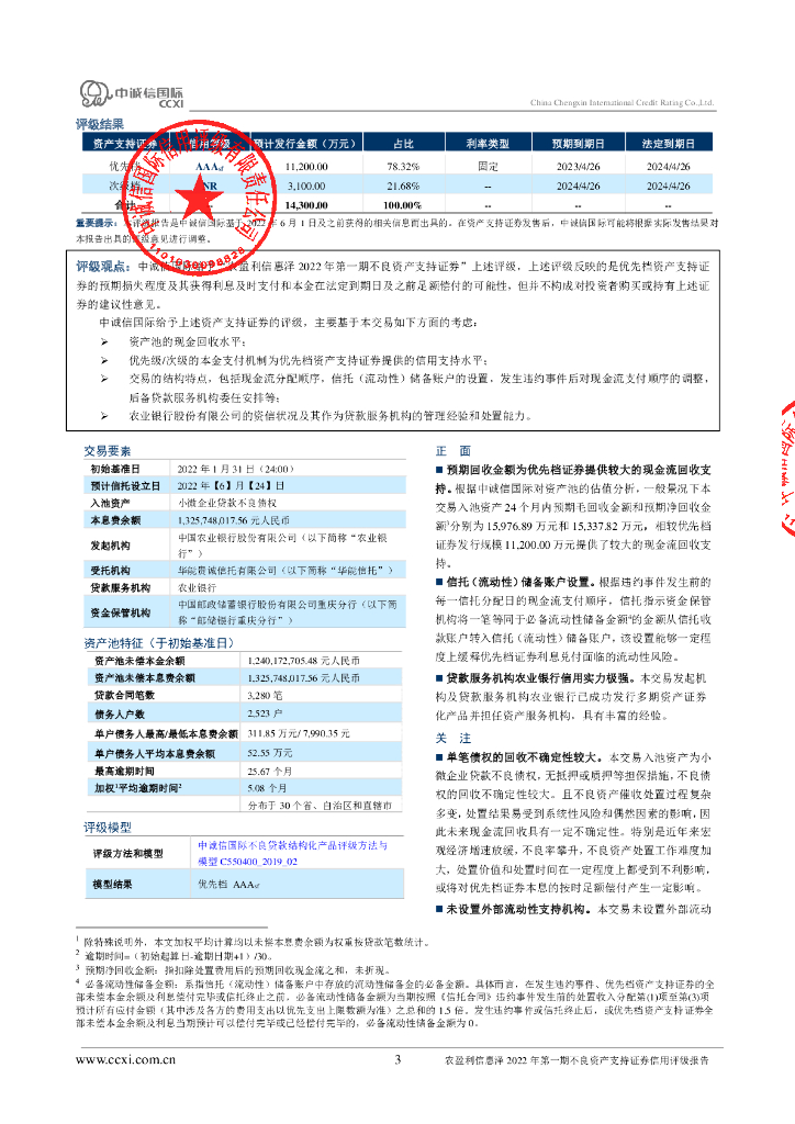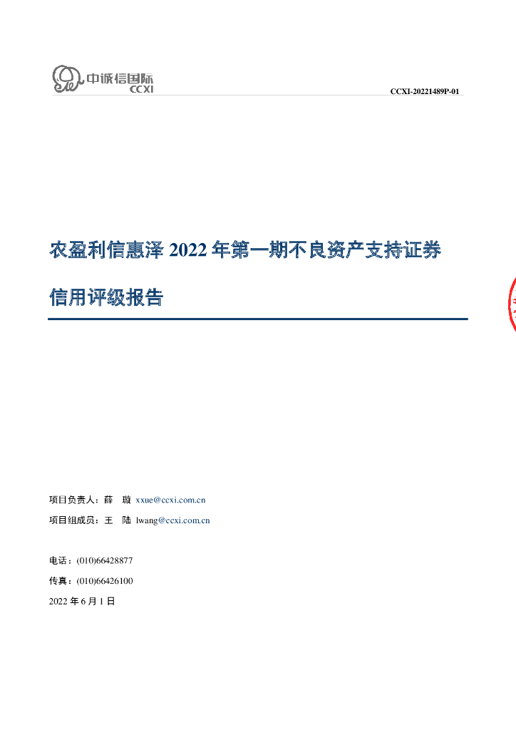 中诚信:农盈利信惠泽2022年第一期不良资产支持证券信用评级报告.pdf