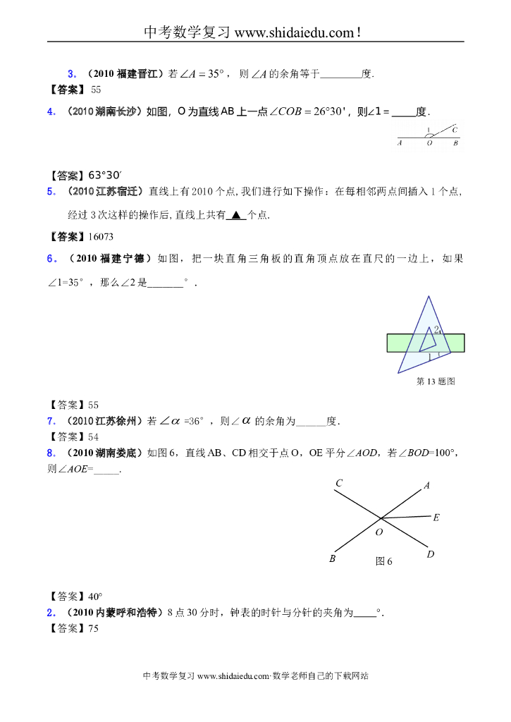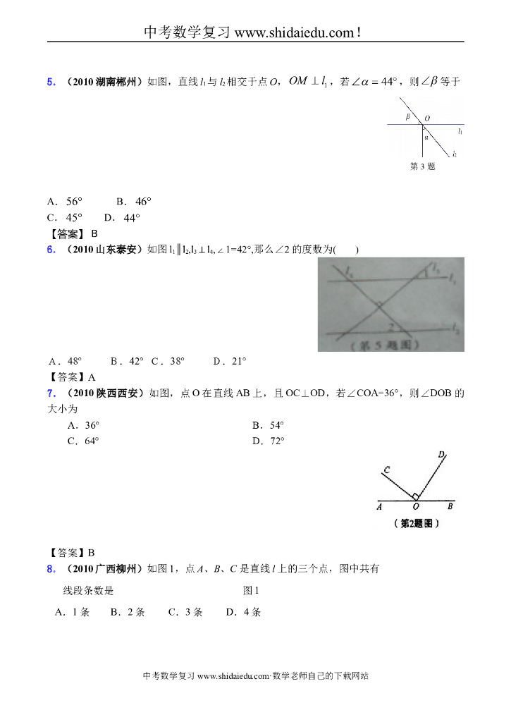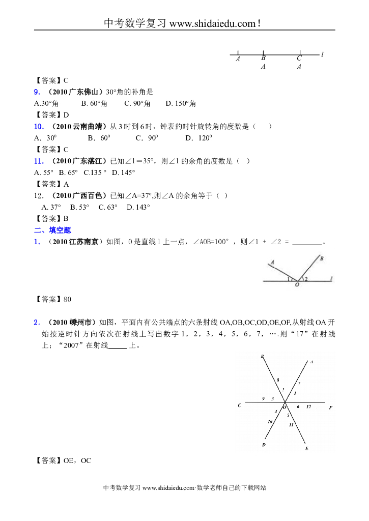 年全国各地数学中考试题分类汇编-线段、角及相交线(含答案).doc