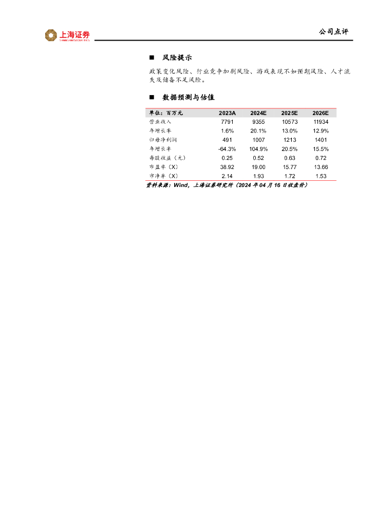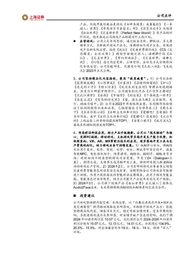 上海证券:完美世界2023年年度报告点评:业绩符合预期,新游戏上线有望推动业绩改善.pdf