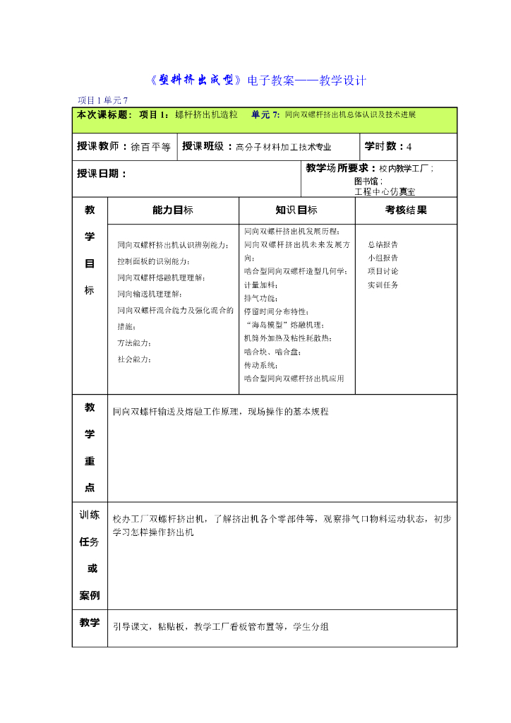 《塑料挤出成型》电子教案-单元7:同向双螺杆挤出机总体认识及技术进展.pdf
