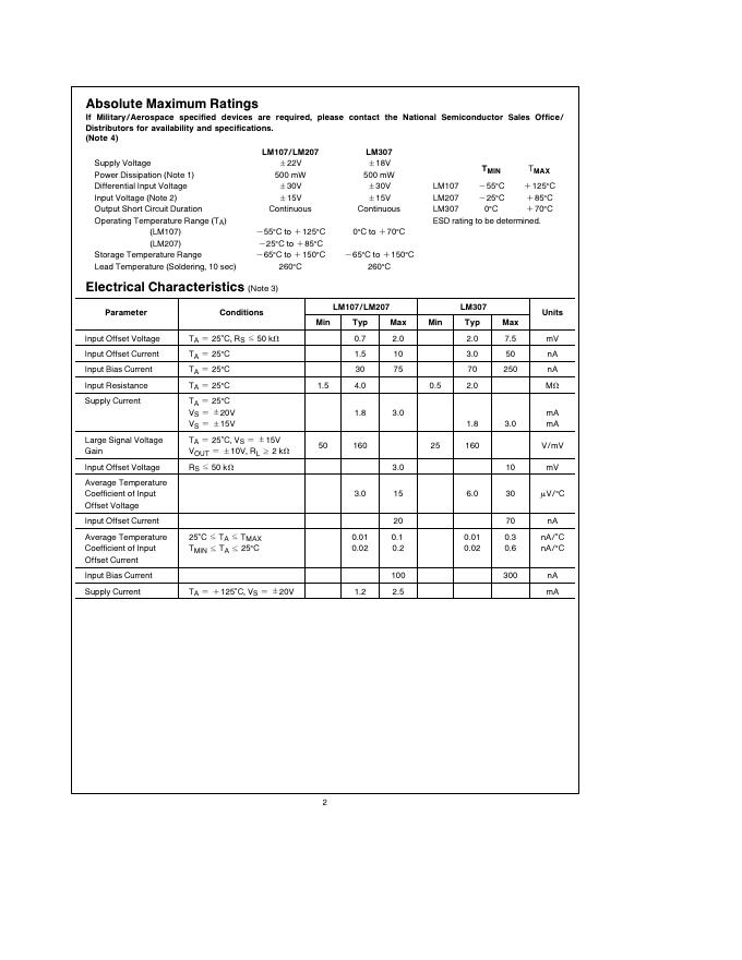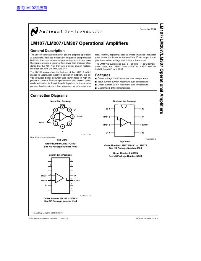 National Semiconductor LM107/LM207/LM307 Operational Amplifiers 数据手册.pdf