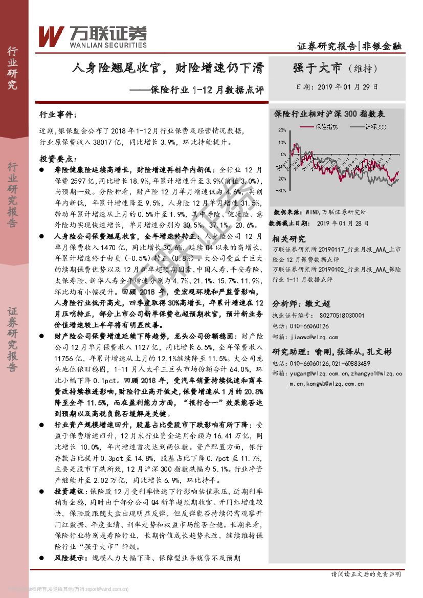 万联证券:保险行业1-12月数据点评:人身险翘尾收官,财险增速仍下滑.pdf