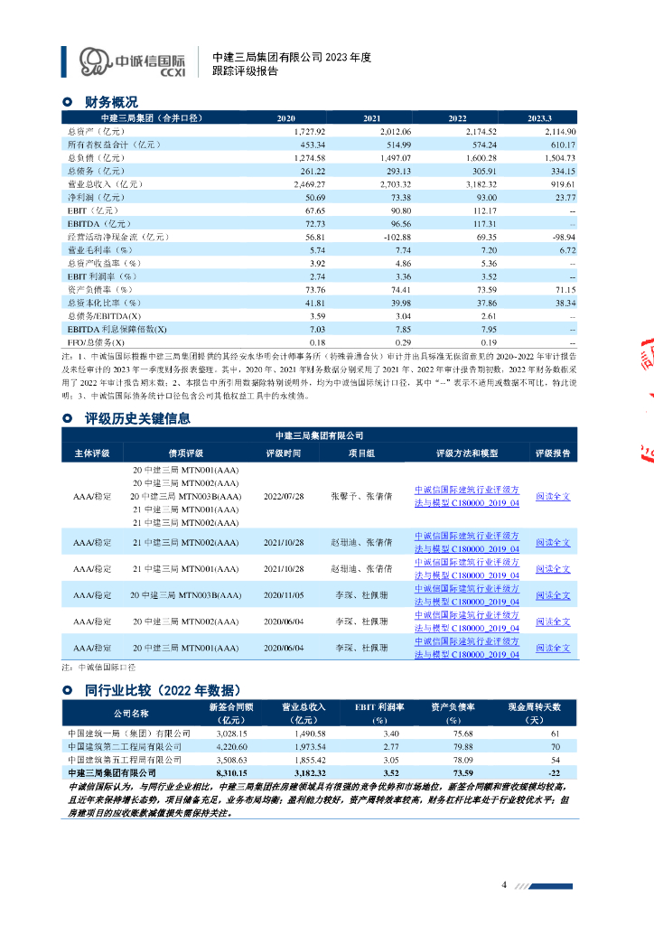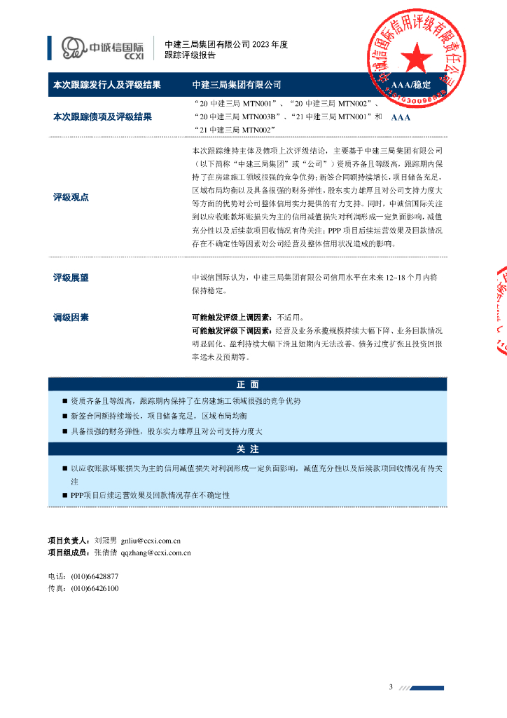 中诚信:中建三局集团有限公司主体信用评级报告及跟踪评级安排.pdf