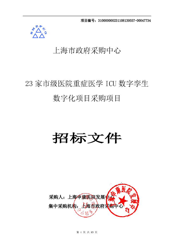23家市级医院重症医学ICU数字孪生数字化项目招标文件.pdf