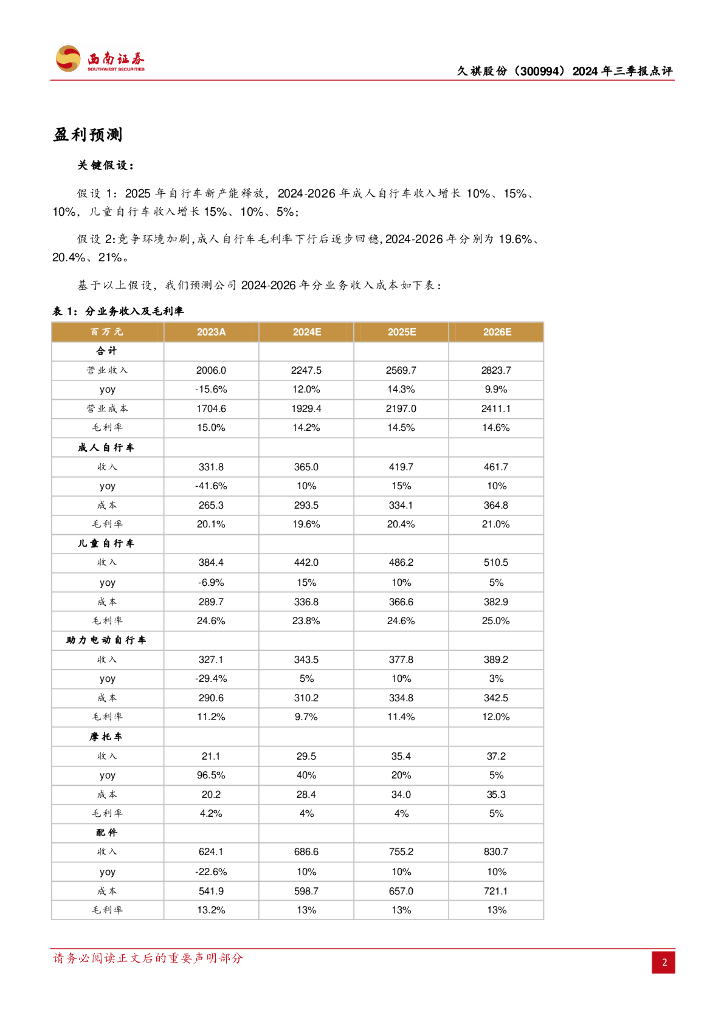 西南证券:久祺股份(300994)-2024年三季报点评:逐步完善海外销售布局,静待盈利能力改善.pdf