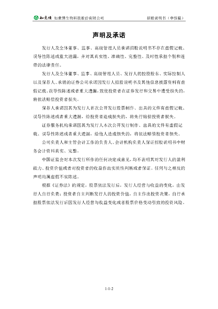如意情生物科技股份有限公司深交所创业板IPO上市招股说明书.pdf