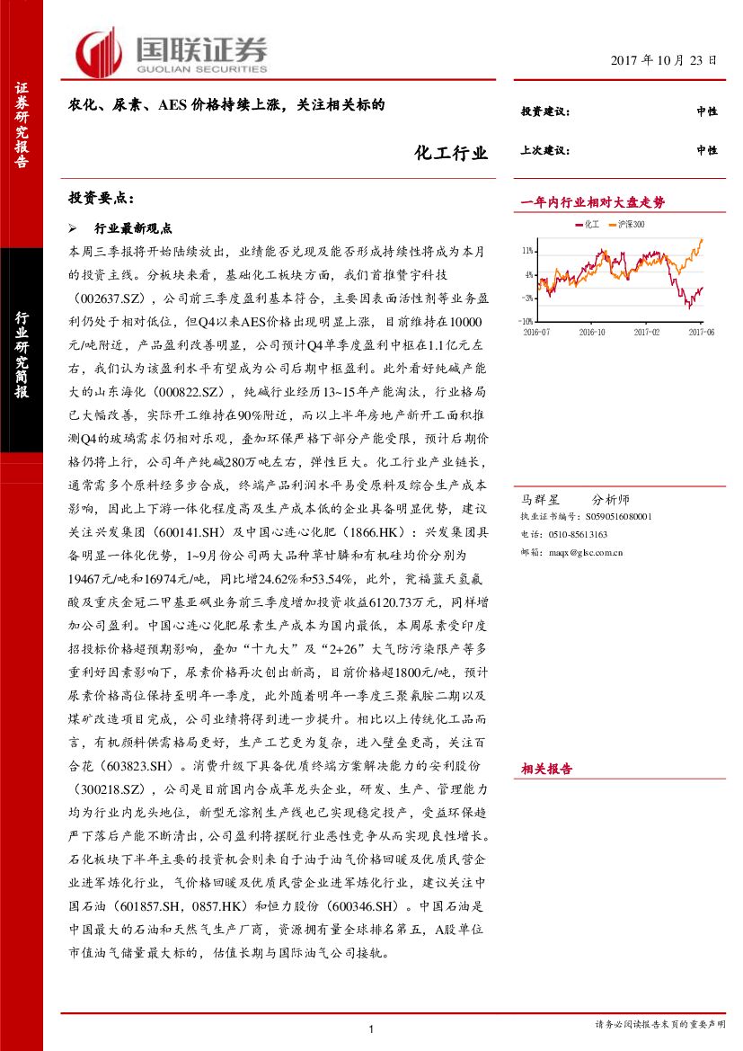 国联证券:化工行业:农化、尿素、AES价格持续上涨,关注相关标的.pdf