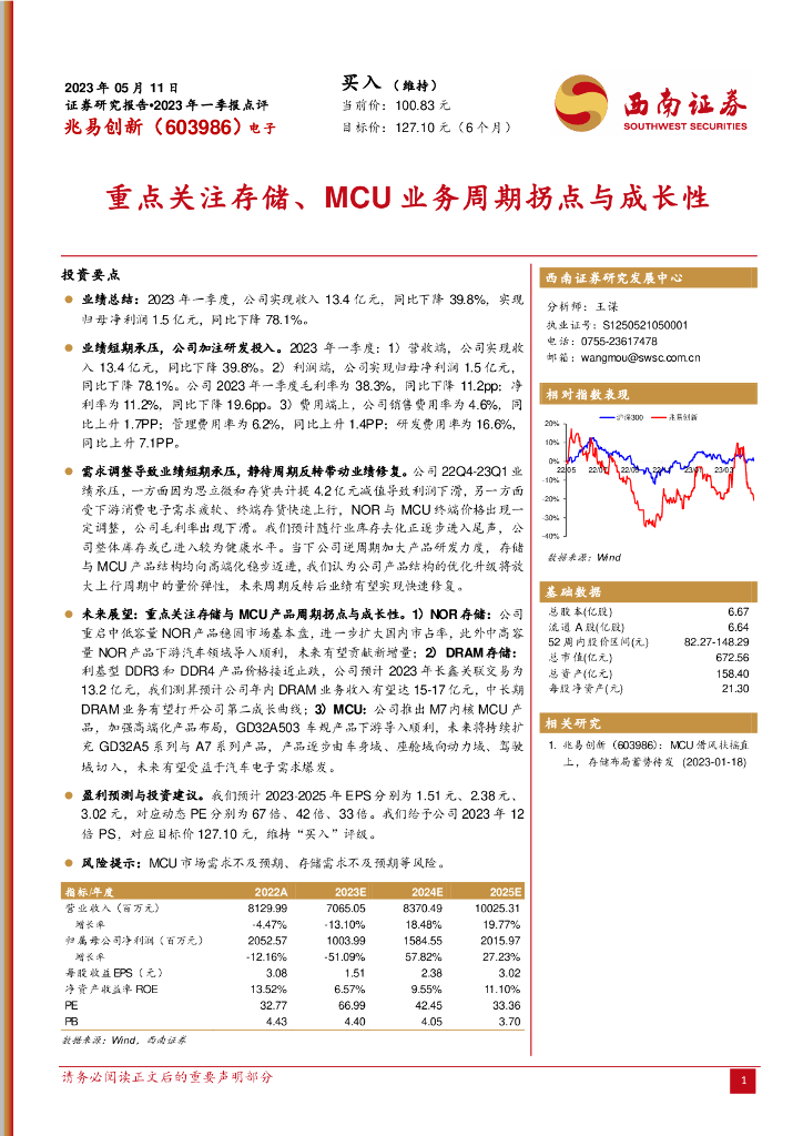 西南证券:兆易创新(603986)-重点关注存储、MCU业务周期拐点与成长性.pdf