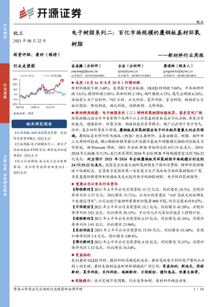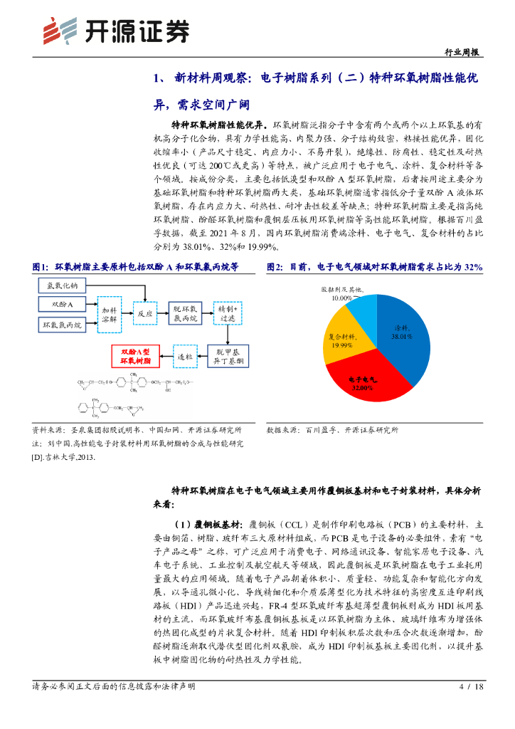 开源证券:新材料行业周报:电子树脂系列二:百亿市场规模的覆铜板基材环氧树脂.pdf