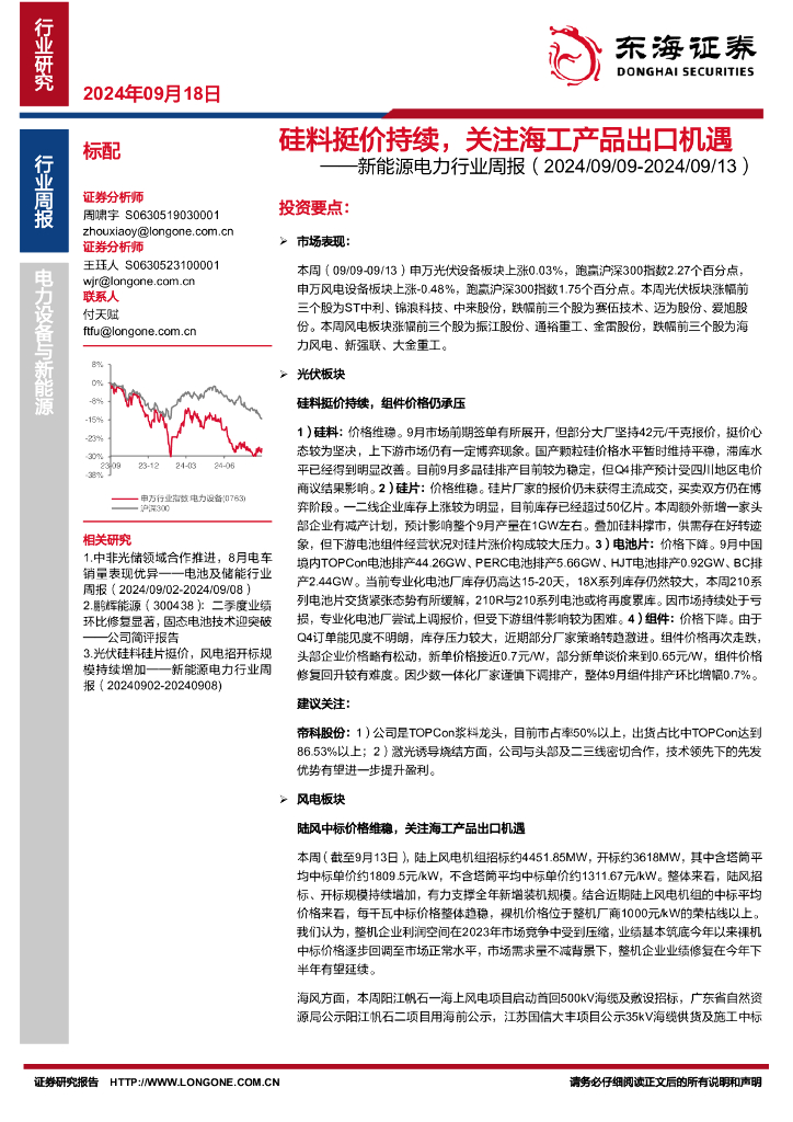 东海证券:新能源电力行业周报:硅料挺价持续,关注海工产品出口机遇.pdf