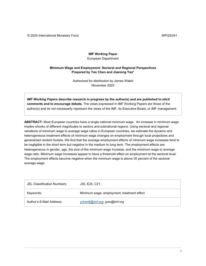 国际货币基金组织:最低工资与就业:部门和区域视角(英文版).pdf
