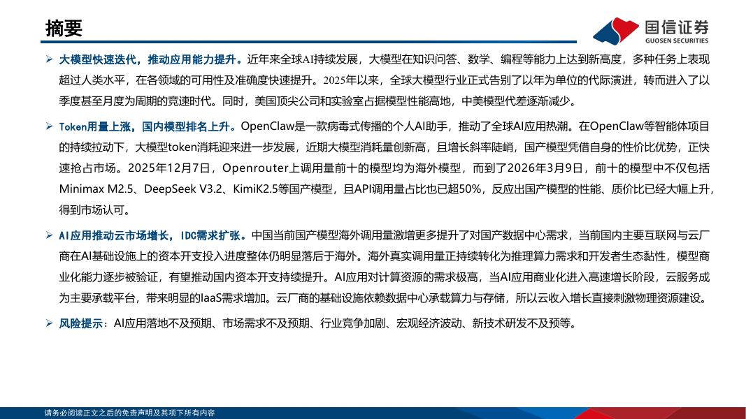 国信证券:计算机行业Token出海专题报告:国产模型抢占市场,IDC需求迅速扩张.pdf