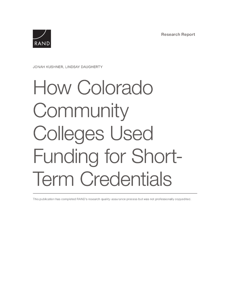 Rand兰德:2024科罗拉多社区学院如何利用资金获得短期证书报告(英文版).pdf