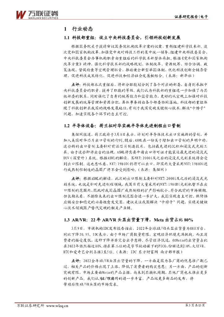 万联证券:电子行业周观点:科学技术部重组,荷兰拟实施半导体先进制程出口管制.pdf