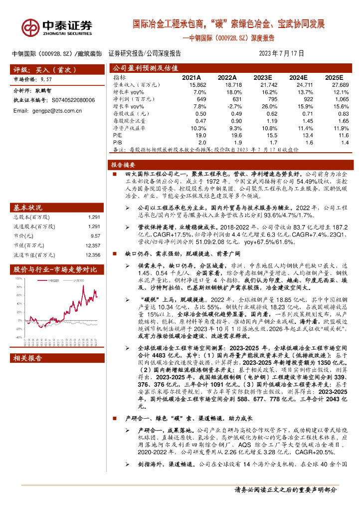 中泰证券:中钢国际(000928)-深度报告:国际冶金工程承包商,“碳”索绿色冶金、宝武协同发展.pdf