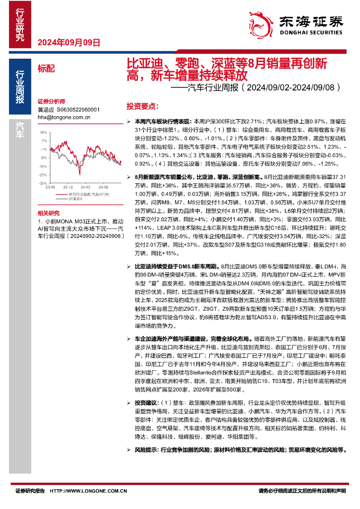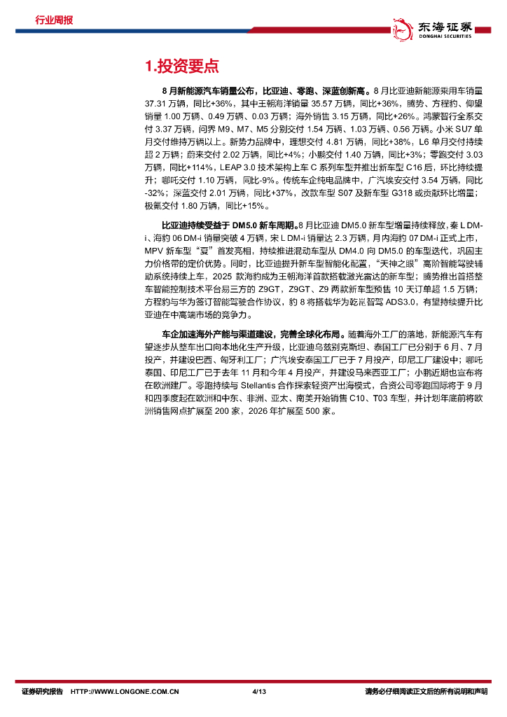 东海证券:汽车行业周报:比亚迪、零跑、深蓝等8月销量再创新高,新车增量持续释放.pdf