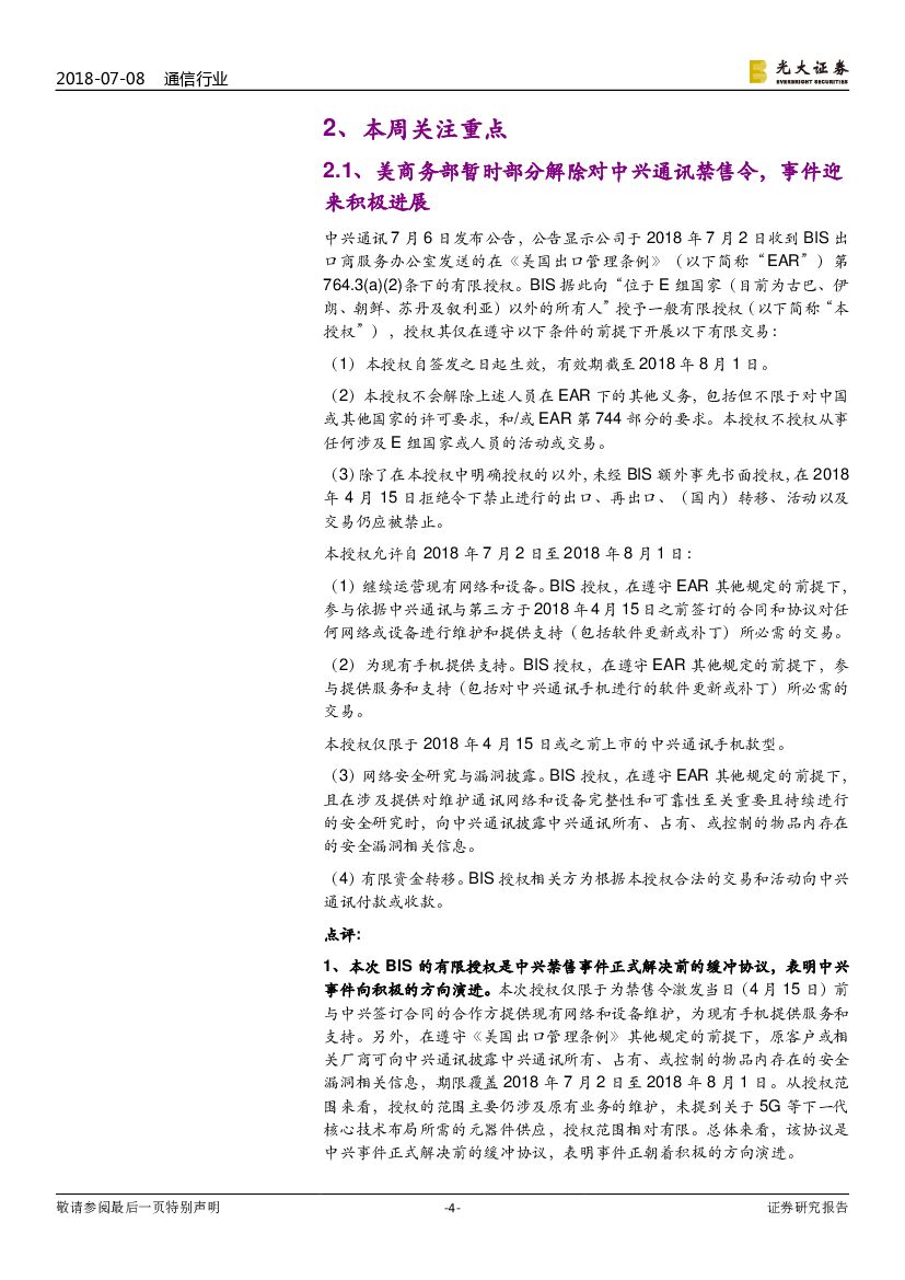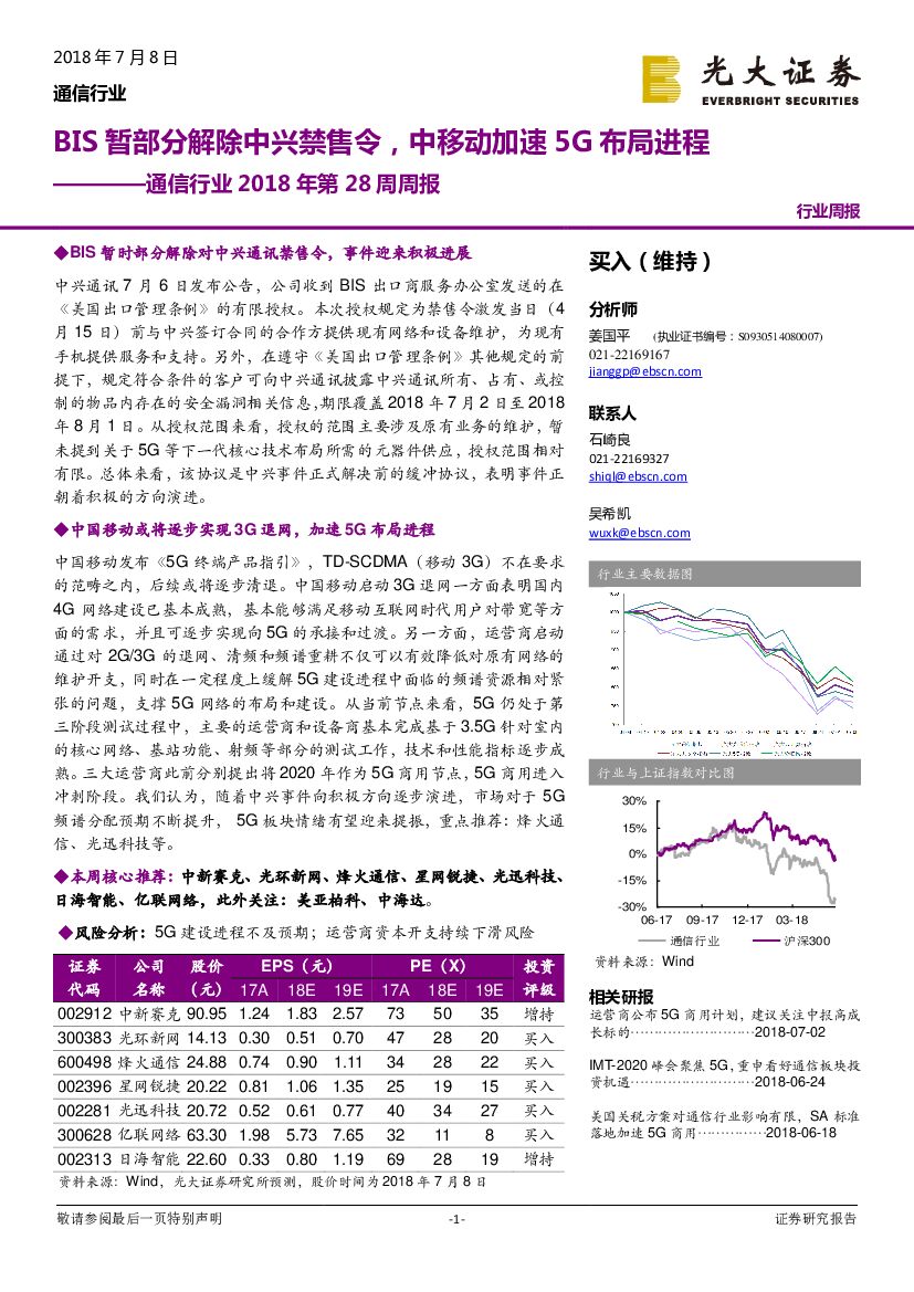 光大证券:通信行业2018年第28周周报:BIS暂部分解除中兴禁售令,中移动加速5G布局进程.pdf
