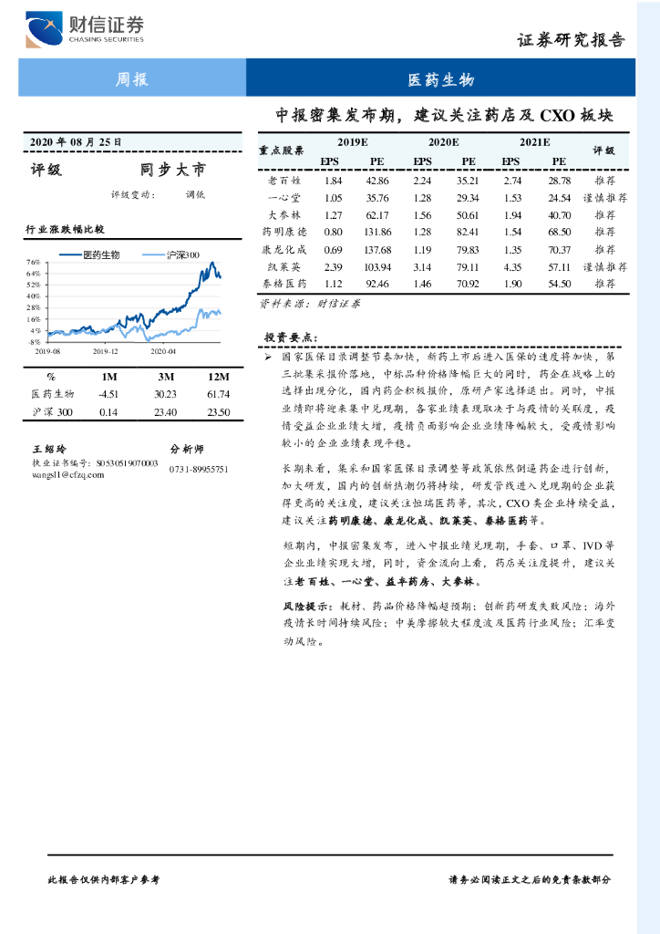 财信证券:医药生物周报:中报密集发布期,建议关注药店及CXO板块.pdf