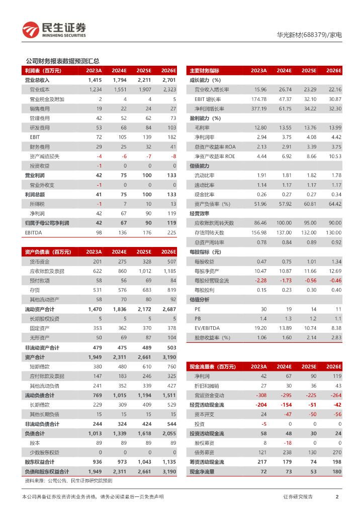 民生证券:华光新材(688379)-2024年中报点评:传统业务及新赛道齐头并进,盈利水平显著提升.pdf