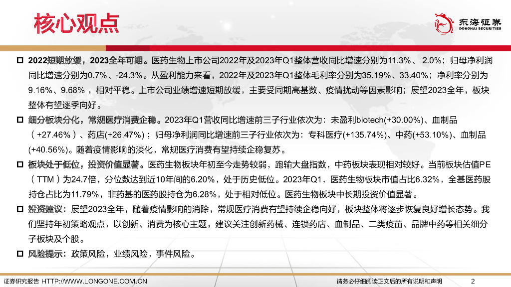 东海证券:医药生物行业2022年报&2023一季报总结:2022短期放缓,2023全年可期.pdf