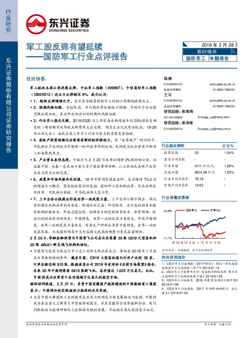 东兴证券:国防军工行业点评报告:军工股反弹有望延续.pdf