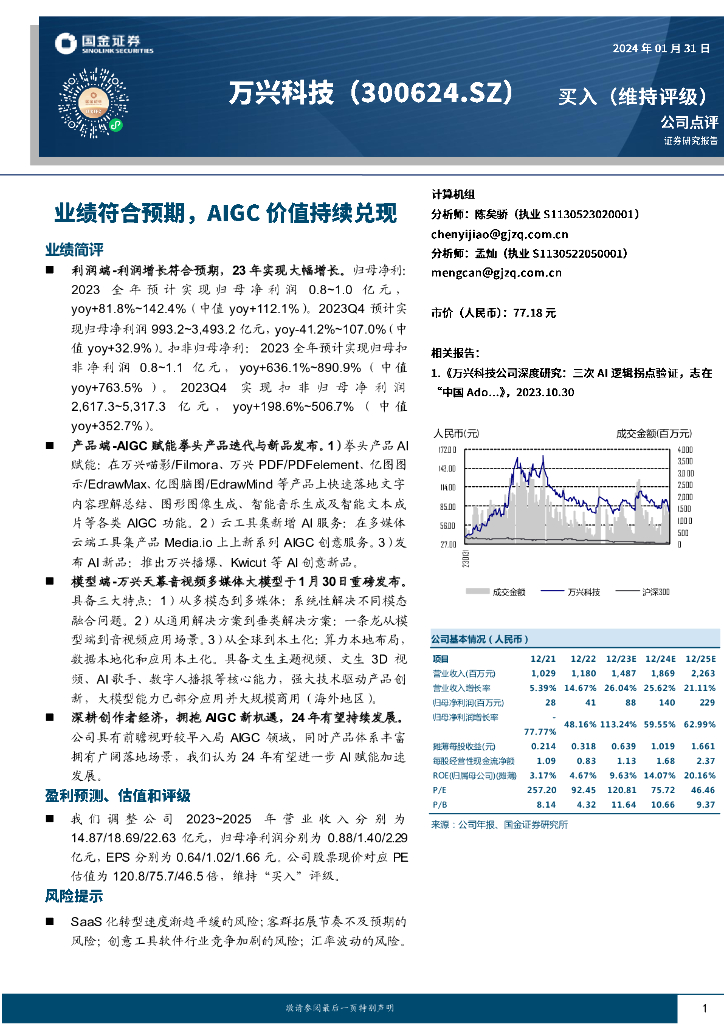 国金证券:万兴科技(300624)-业绩符合预期,AIGC价值持续兑现.pdf