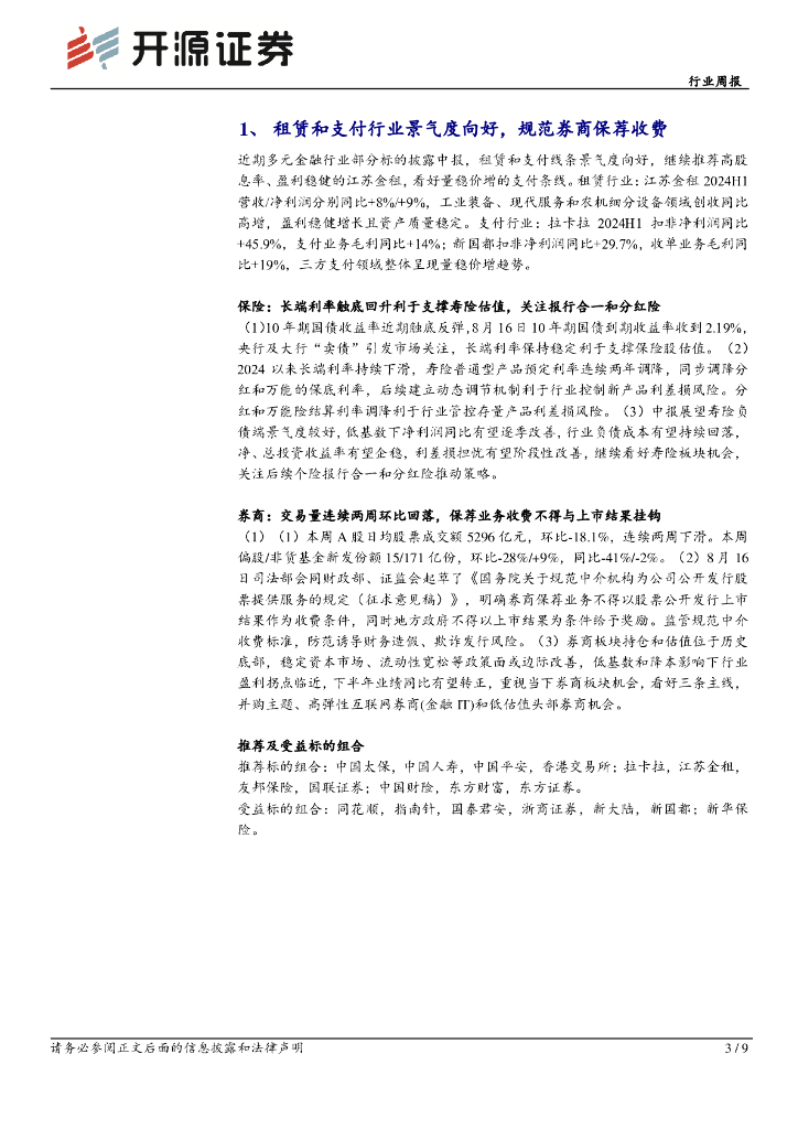 开源证券:非银金融行业周报:租赁和支付行业景气度向好,规范券商保荐收费.pdf