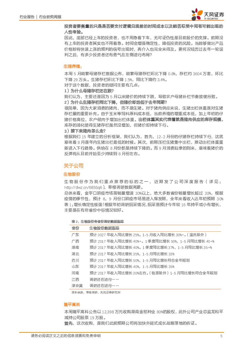 天风证券:农林牧渔行业研究周报:2017年第25周周报:本周重点关注禽链超跌机遇;继续重点推荐板块优质白马龙头隆平高科、大北农继续重点推荐板块优质白马龙头隆平高科、大北农.pdf