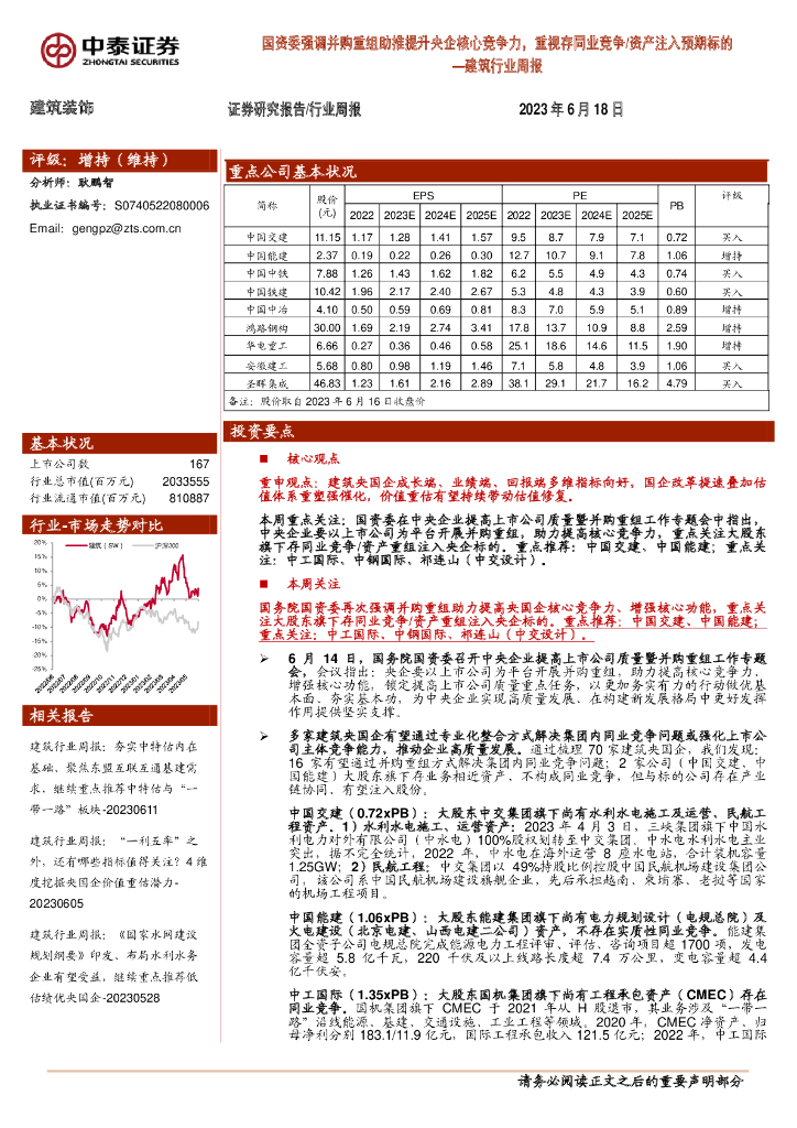 中泰证券:建筑行业周报:国资委强调并购重组助推提升央企核心竞争力,重视存同业竞争/资产注入预期标的.pdf