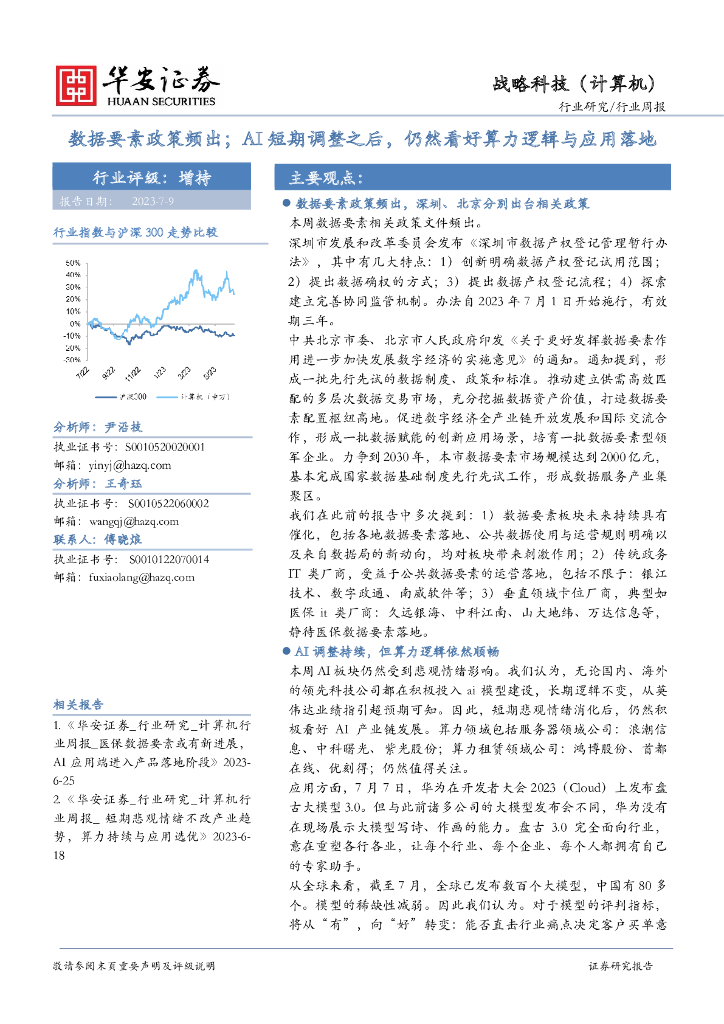 华安证券:战略科技(计算机)行业周报:数据要素政策频出;AI短期调整之后,仍然看好算力逻辑与应用落地.pdf