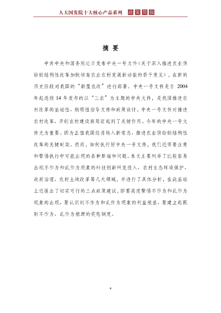 人大国发院:国发院政策简报第十四期:中央一号文件推行过程中需警惕不作为和乱作为.pdf